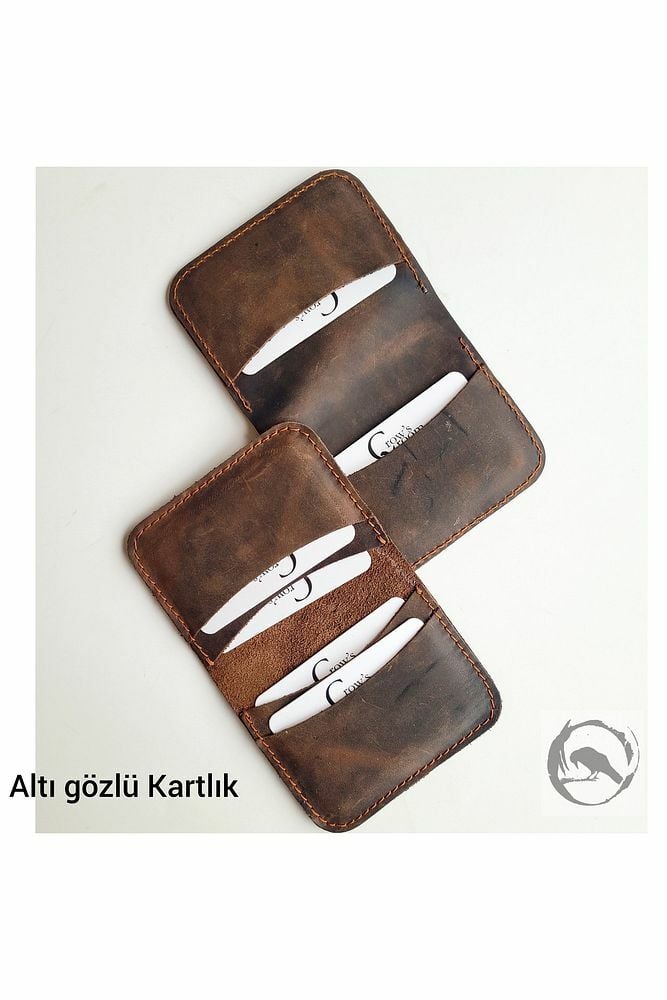 Handmade Hakiki (Crazy) Deri Altı Gözlü Kartlık (kahverengi crazy)