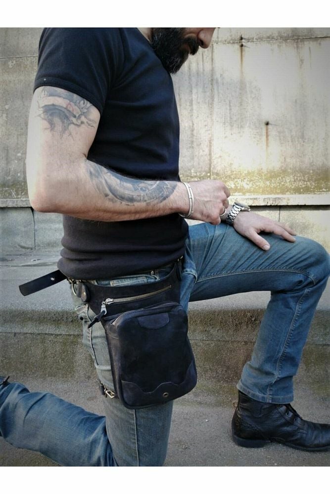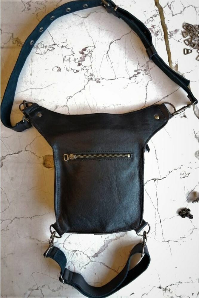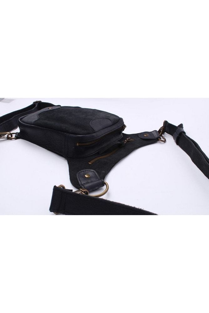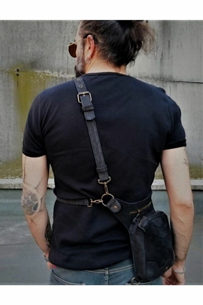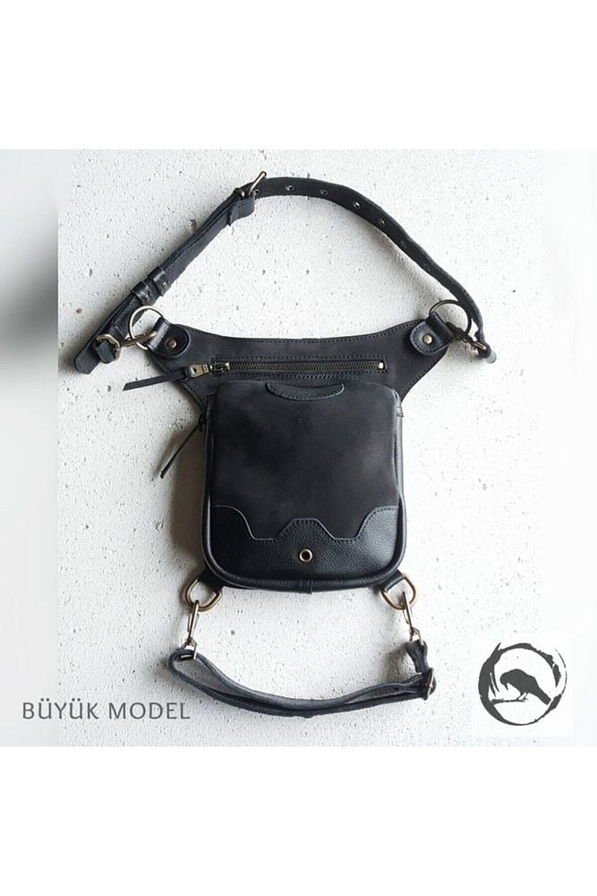 El Yapımı Hakiki Deri Bel & Bacak Çantası - Fonksiyonel Büyük Model (Siyah)