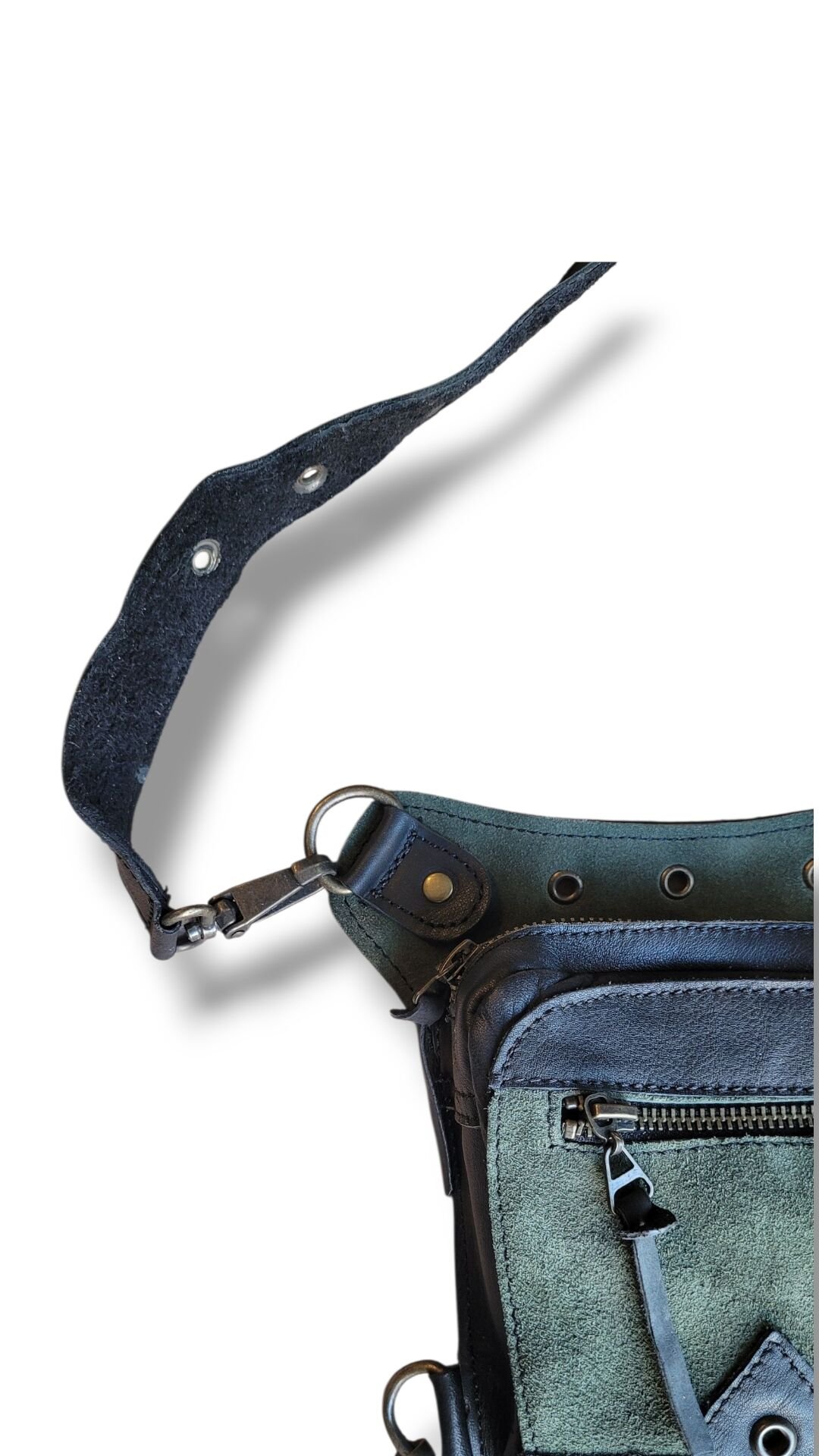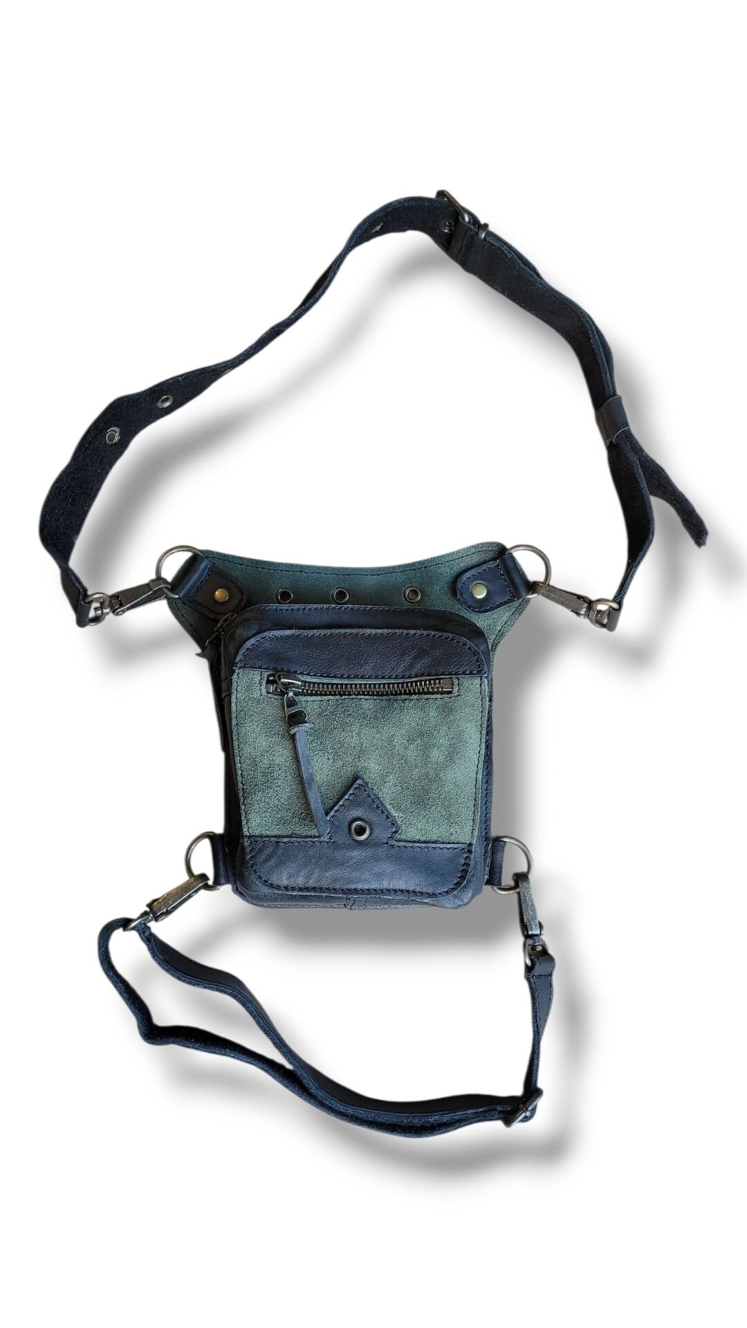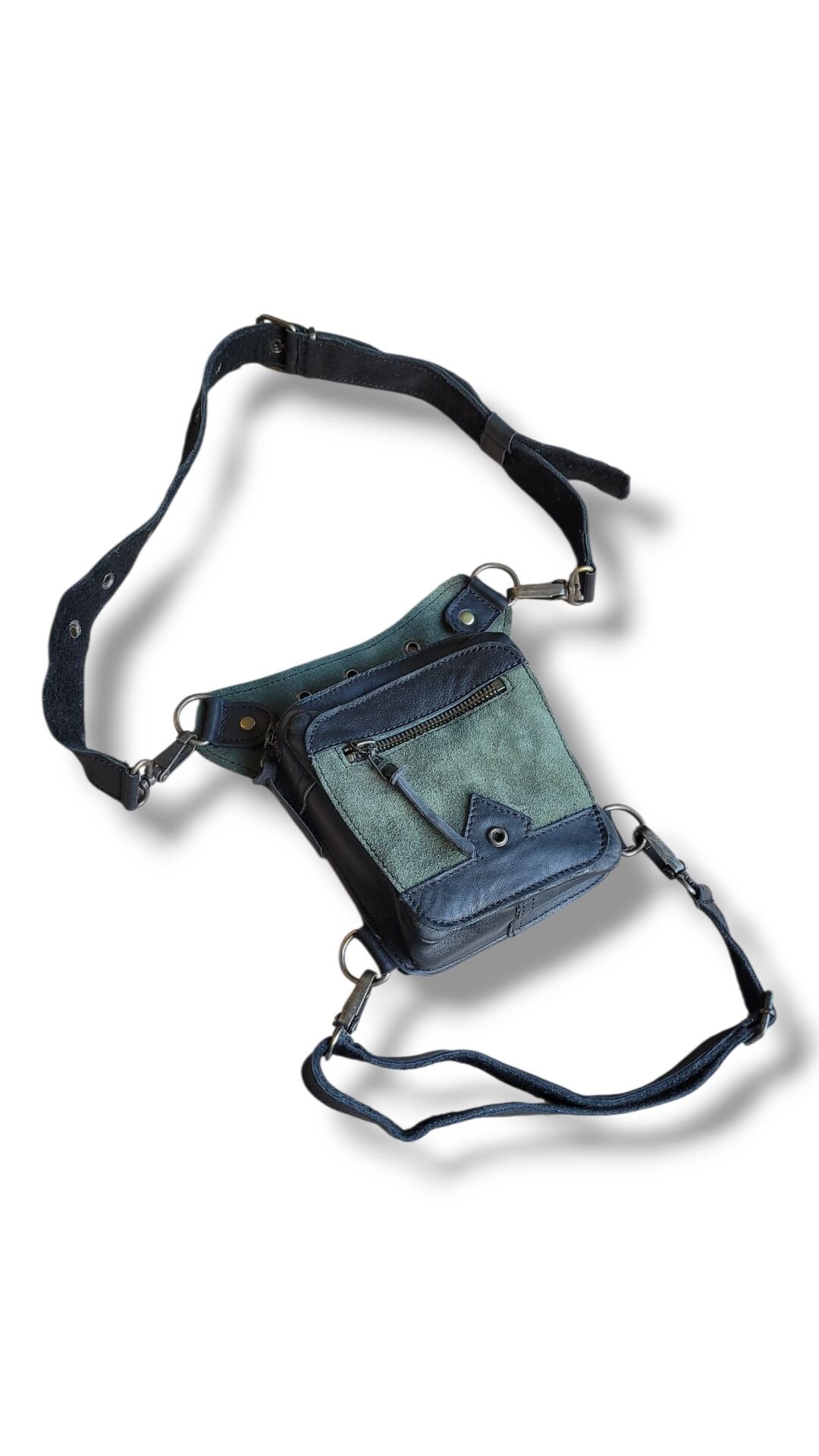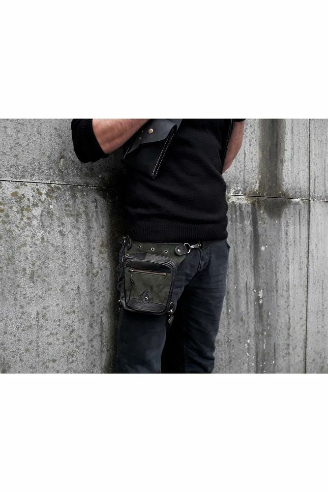 Handmade Fonksiyonel Deri Bel Ve Bacak Çantası (KÜÇÜK MODEL SİYAH&YEŞİL)
